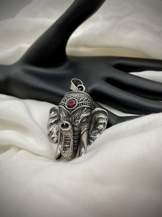 Kettenanhänger Elefant Ganesha mit rotem Stein
