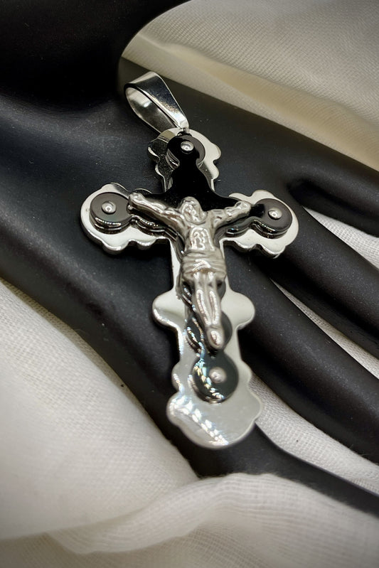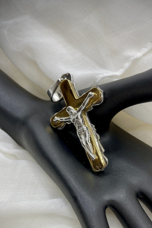 Edelstahl Kettenanhänger – Bicolor-Kreuz mit Jesusfigur