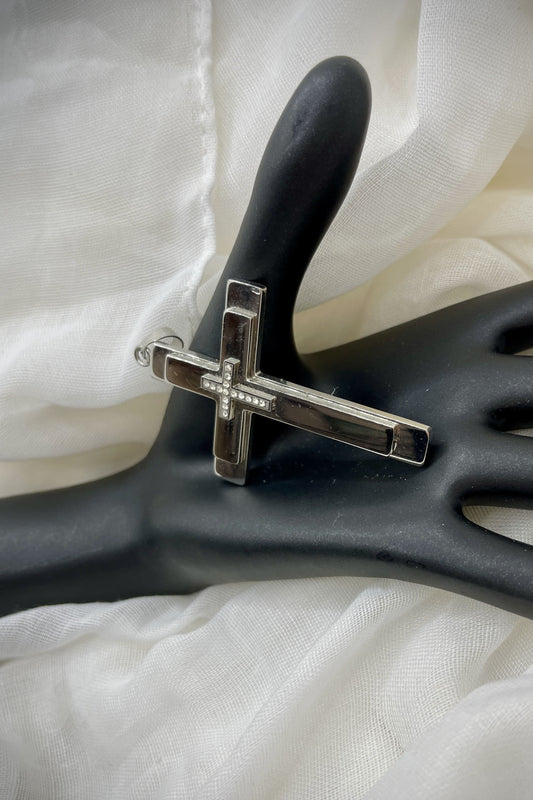 Edelstahl Kettenanhänger – Silberfarbenes Kreuz mit funkelnden Details