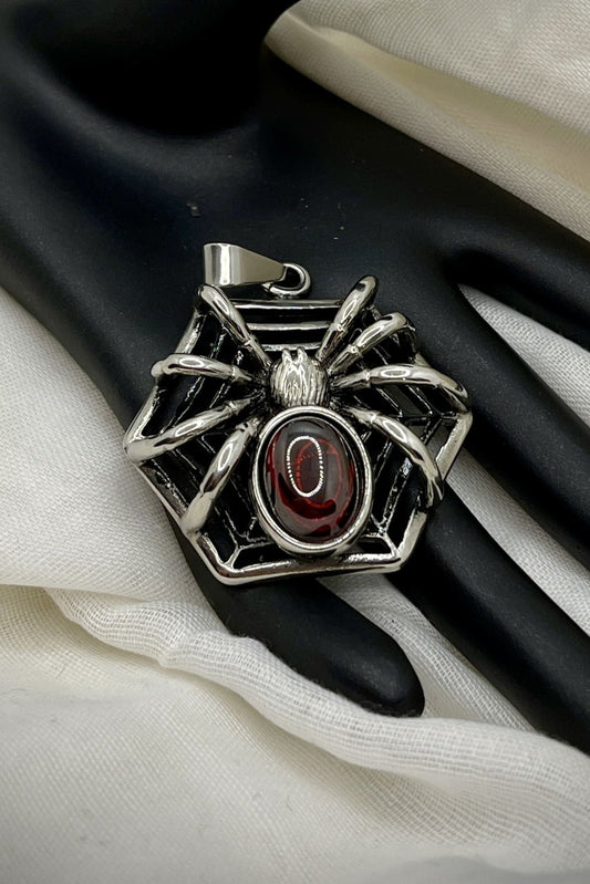 Mystischer Spinnen-Kettenanhänger aus Edelstahl mit rotem Stein
