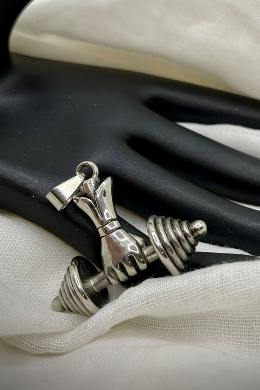 Edelstahl Kettenanhänger „Hand mit Hantel“