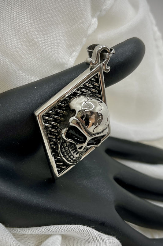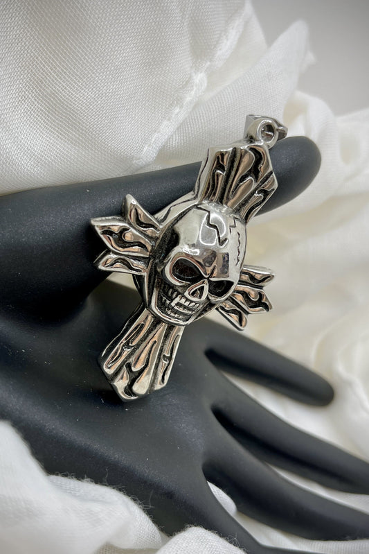 Edelstahl-Kettenanhänger mit Schädel und Kreuz