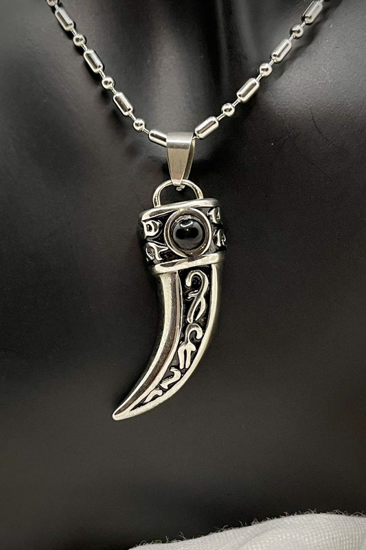Wolfszahn-Halskette mit schwarzem Akzentstein