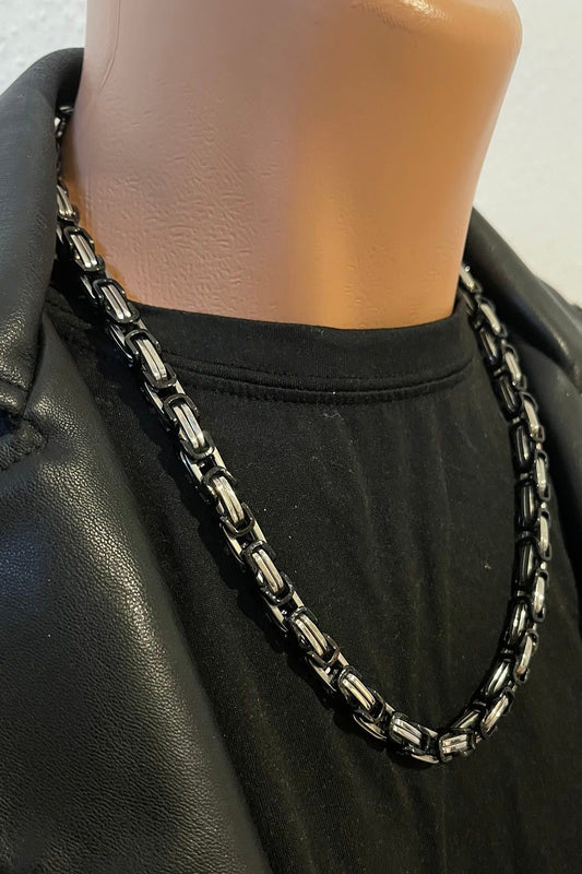 316L Edelstahlkette Königsketten Design - Silber/Schwarz - 8mm