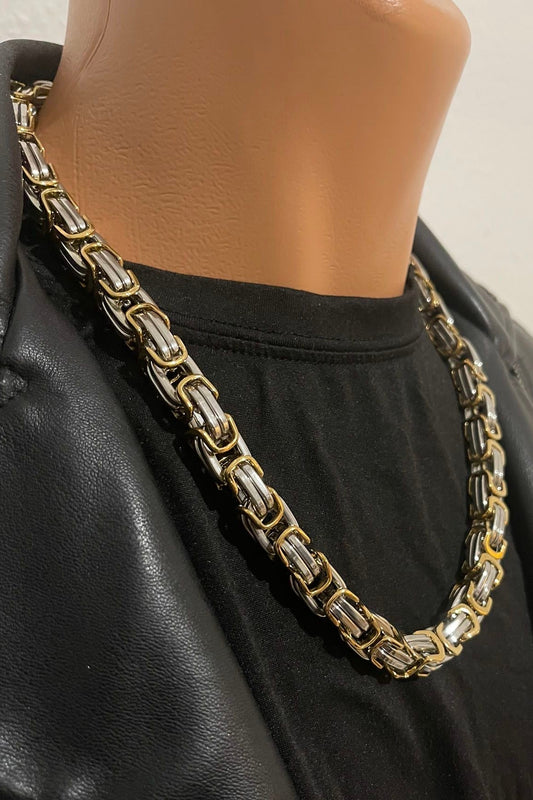 Massive 316L Edelstahl Königskette Bi-Color Silber/Gold – 10 mm