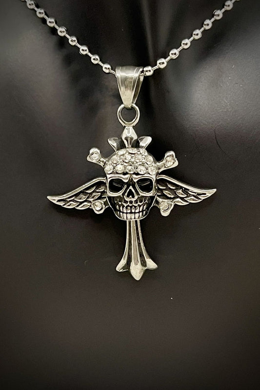 Geflügelter Totenkopfanhänger mit Kristallverzierung